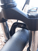 Крепление осуществляется с помощью стандартных крепежных отверстий на велосипеде и дополнительных регулируемых опорных "усов"