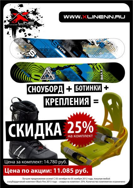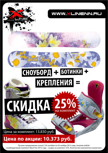 Лучшее предложение осени! С 05 октября по 05 ноября 2012 года, покупая любой сноубордичекий комплект Black Fire 2013 года — скидка на комплект 25%!